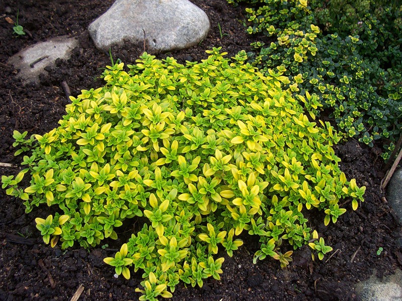 Саженец тимьяна лимоннопахнущего Aureus вырастает до 15-30 см. Желательно периодически состригать высокие ростки, чтобы сохранять аккуратную декоративность кустиков. Рассада данного сорта предпочитает солнечные места на участке.